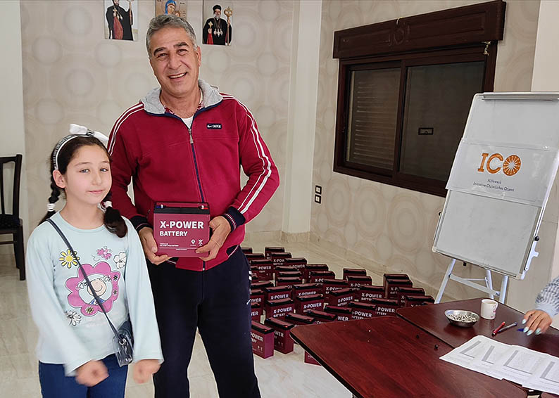 Das "Relief and Development Committee"der syrisch-orthodoxen Pfarre vonTartus in Syrien konnte kürzlich 200 kleine tragbare Batterien zur Stromerzeugung an ebenso viele bedürftige Familien verteilen.